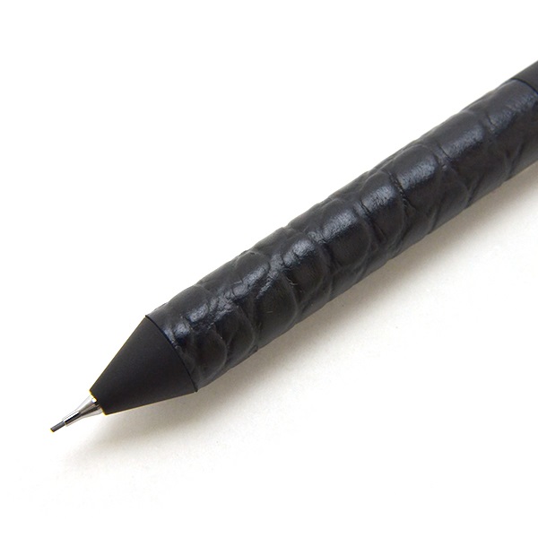 黒塗装された金属軸のボディのグリップ部分には、ヘビーレタンレザーを巻いて仕上げました。