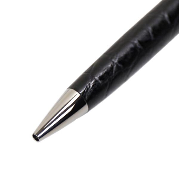 クロコダイルの型押し革を、熟練の職人の手によりひとつひとつ丁寧に巻き込んだボールペン。