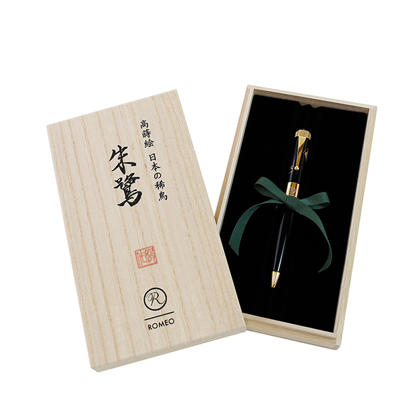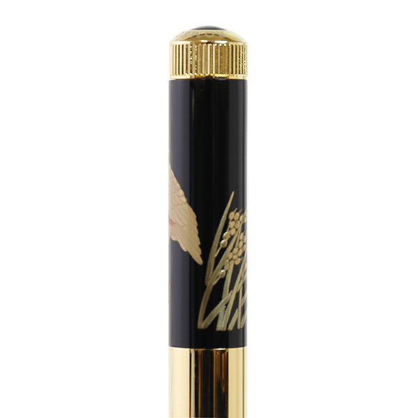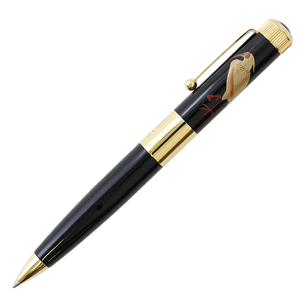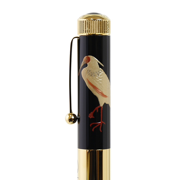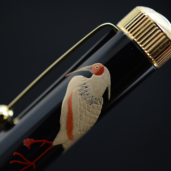 どっしり存在感ある太軸に施された蒔絵は、絶滅を危惧され、現在では稀な存在となってしまった鳥たちをモチーフに、石川県内の3大漆器産地のひとつ、山中温泉地区で一本ずつ丹念に制作されたもの。