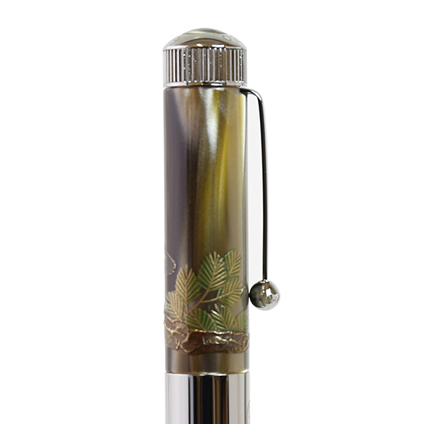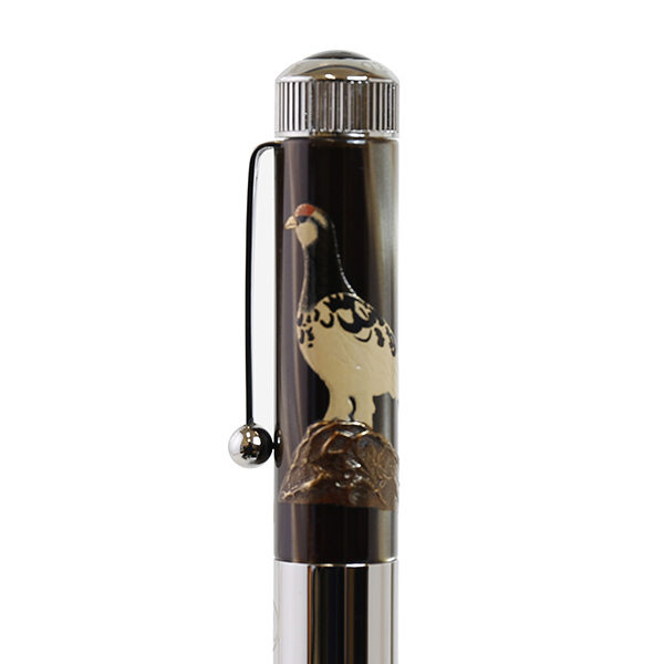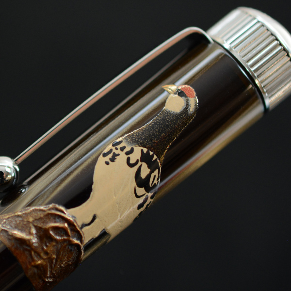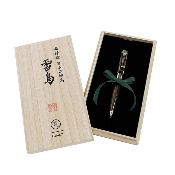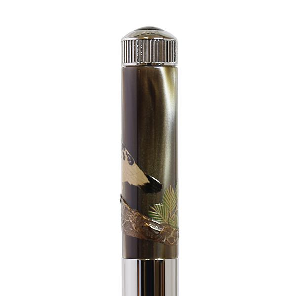 どっしり存在感ある太軸に施された蒔絵は、絶滅を危惧され、現在では稀な存在となってしまった鳥たちをモチーフに、石川県内の3大漆器産地のひとつ、山中温泉地区で一本ずつ丹念に制作されたもの。