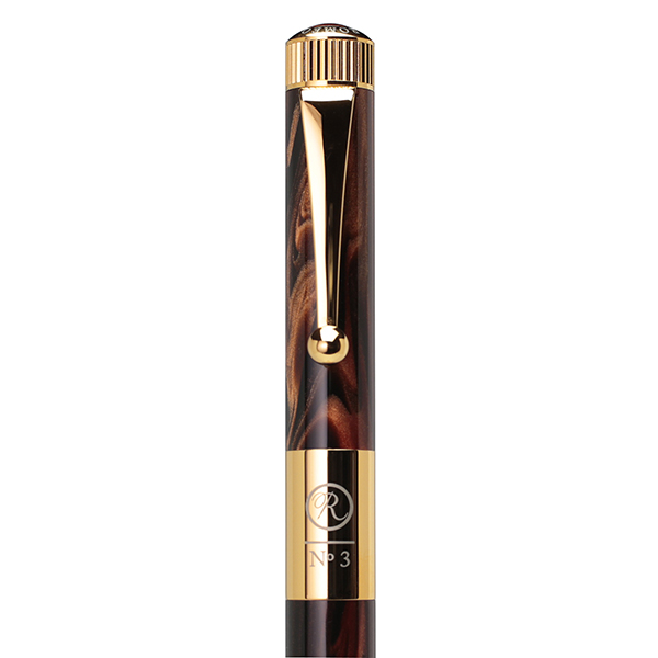 時計の竜頭をモチーフとした天冠に「大切な時間をこの筆記具と共に過ごしていただきたい」というメッセージを込めたROMEO No.3は、手元を彩るフォルム、優れたウェイトバランスとなめらかな筆記が特徴。