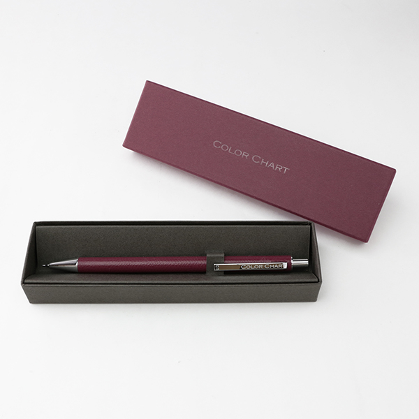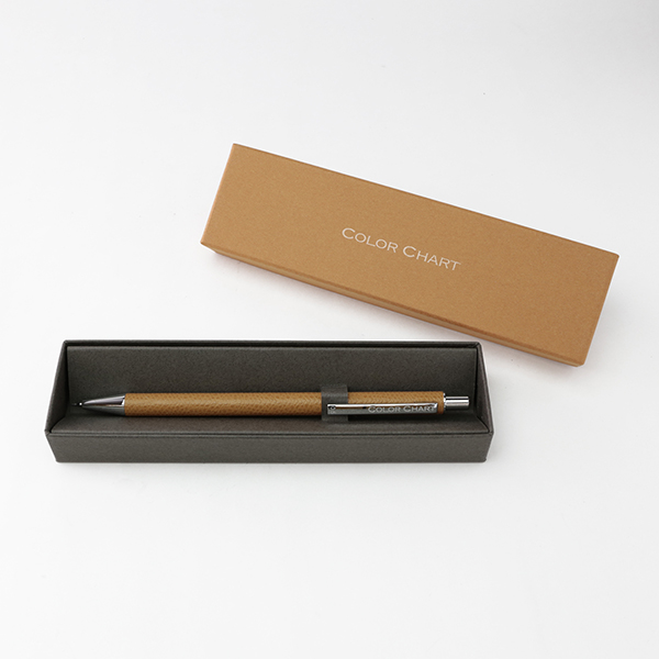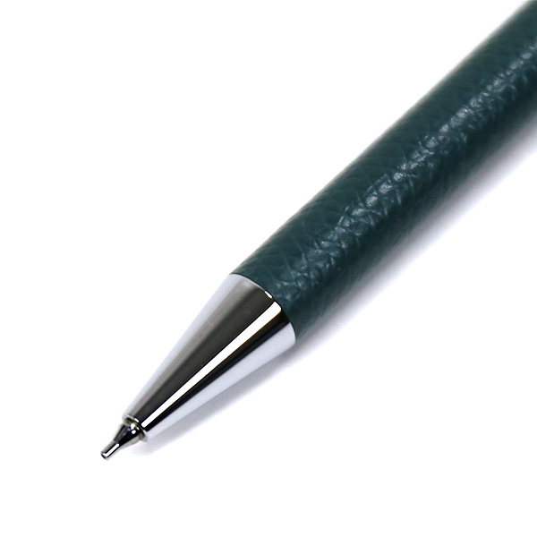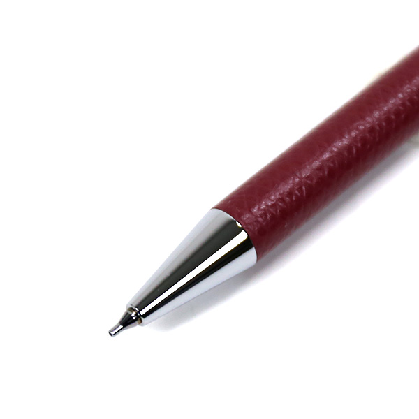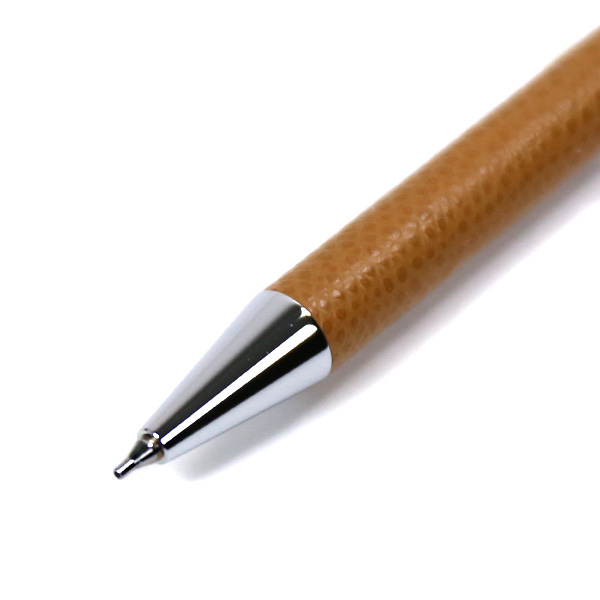 ごく薄く漉いた革を熟練の職人の手でひとつひとつ丁寧に軸に巻き、つくりました。革の質感、色の美しさ、すっきりした細身のフォルムで、文字を書く手元をスマートに彩ります。シャープペンと同色の専用ボックス入りで、ギフトにもおすすめです。