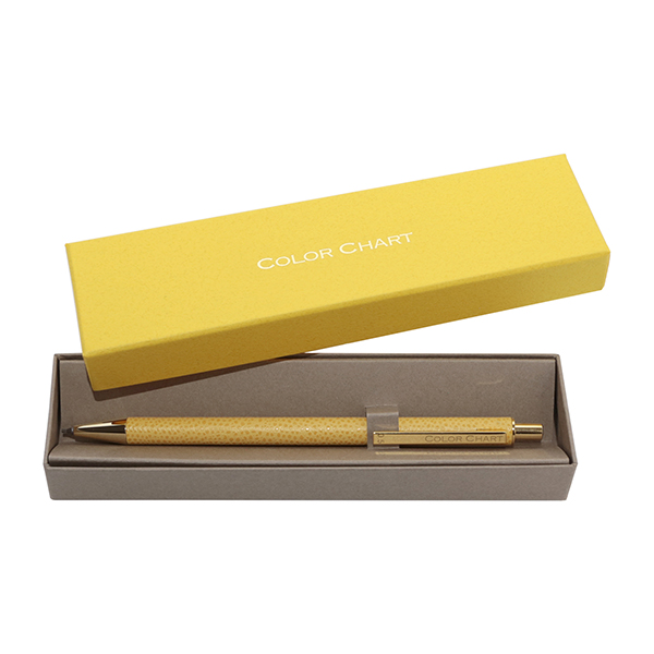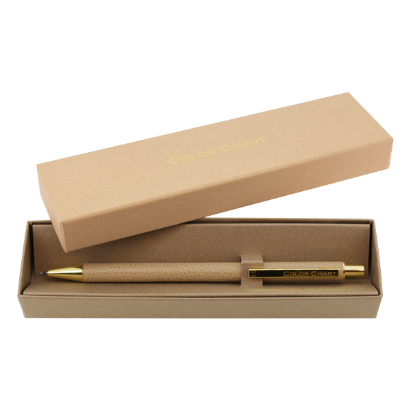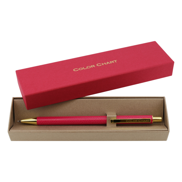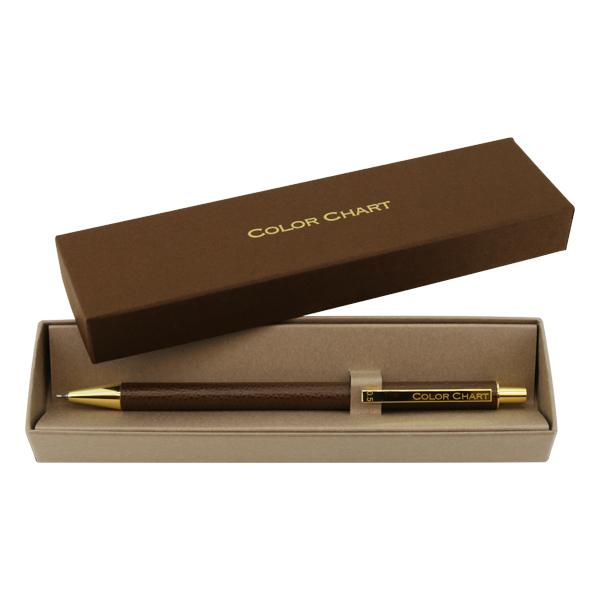 ごく薄く漉いた革を熟練の職人の手でひとつひとつ丁寧に軸に巻き、つくりました。革の質感、色の美しさ、すっきりした細身のフォルムで、文字を書く手元をスマートに彩ります。シャープペンと同色の専用ボックス入りで、ギフトにもおすすめです。