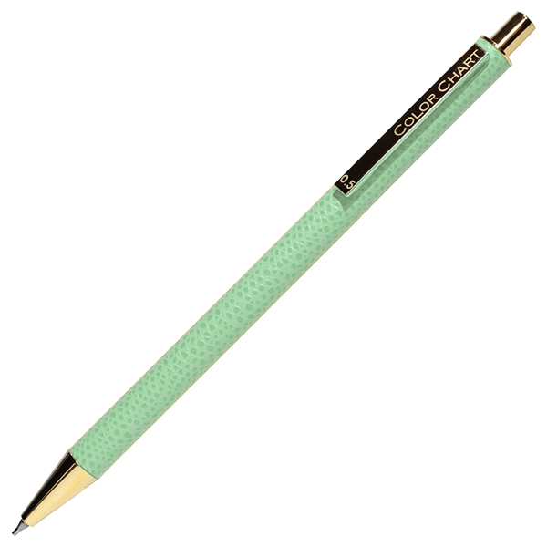 手元を美しく演出する細身のシャープペンは、ごく薄く漉いた革を熟練の職人の手でひとつひとつ丁寧に軸に巻き上げ、仕立てたもの。