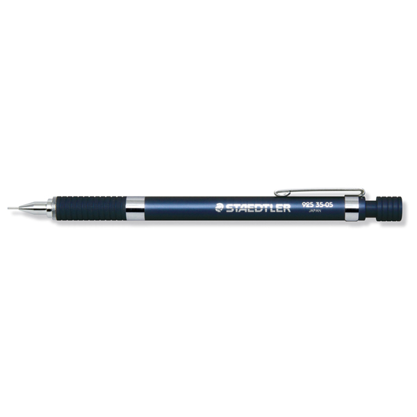 長年多くのプロフェッショナルユーザーから厚い信頼を受けているステッドラーの製図用シャープペンシルのナイトブルーバージョンです。アルミ製ボディで耐久性に優れており、グリップ部の滑り止め加工は、汗をかいた手でも滑りにくく、安定した筆記感を実現。バランスも良く長時間筆記しても疲れにくいデザインとなっております。また4mmのロングスリーブを採用することによって、視界を広く確保でき、製図以外の一般筆記作業にも最適です。硬度表示窓付きで、芯の硬度確認も容易にできます。