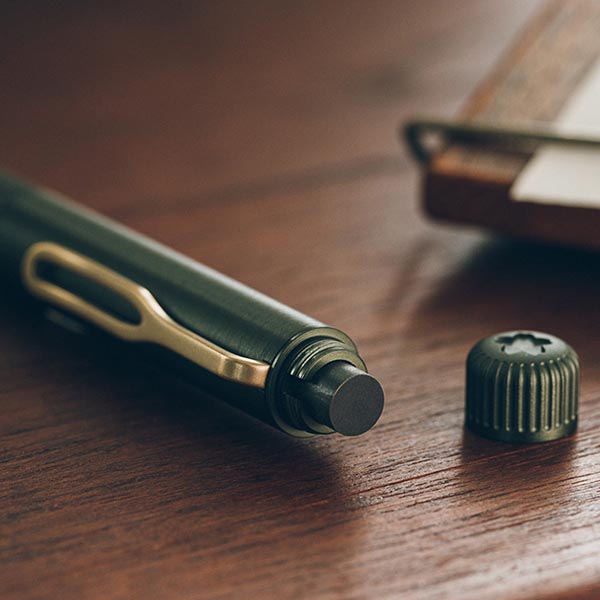 下部はそのカラーと重量バランスにあわせて異なる金属素材の「真鍮」と「洋白」を採用しています。