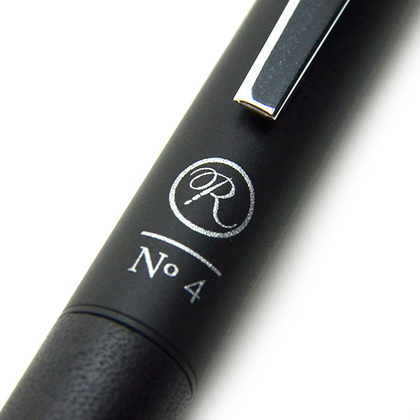 黒塗装された金属軸のボディのグリップ部分には、本革を巻いて仕上げました。