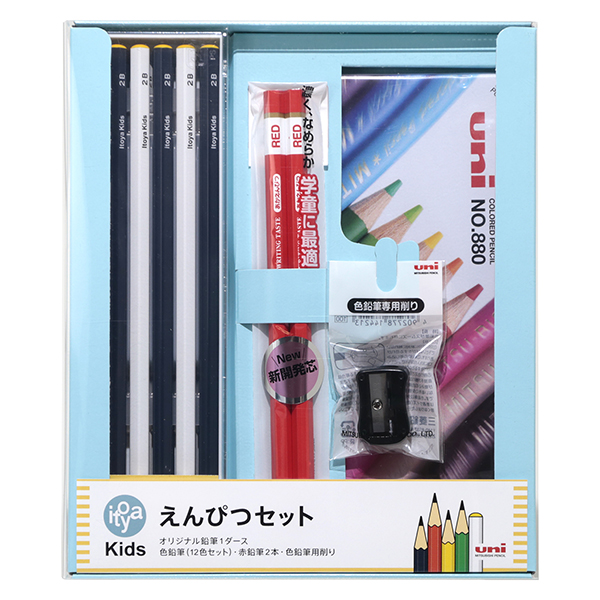 Itoya Kids鉛筆(ネイビー)2B 1ダース、三菱鉛筆880色鉛筆12色セット、ナノダイヤ赤鉛筆2本、ミニ鉛筆削り