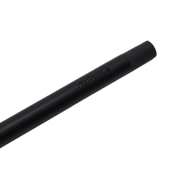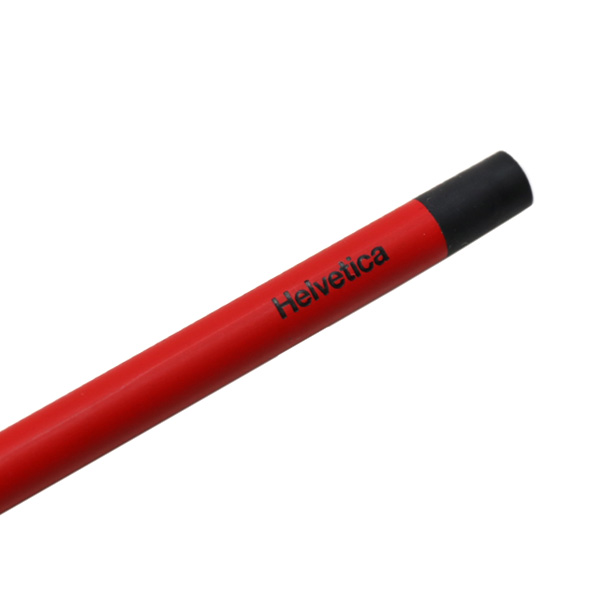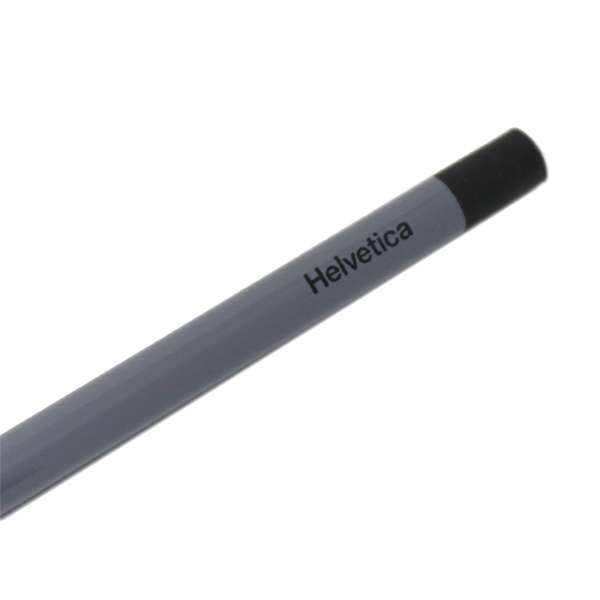 丸いボディーで手に馴染むカーブが心地いい。シンプルなデザインは、削って短くなってもバランスの良さが変わらず最後まで美しさを保ちます。先端の黒い部分は消しゴムになっていて(一般的には消しゴムを金属の金具で固定しています)実用面でも優れています。濃さはHB相当です。