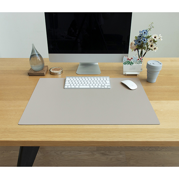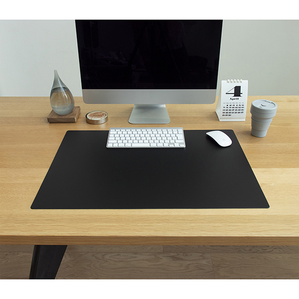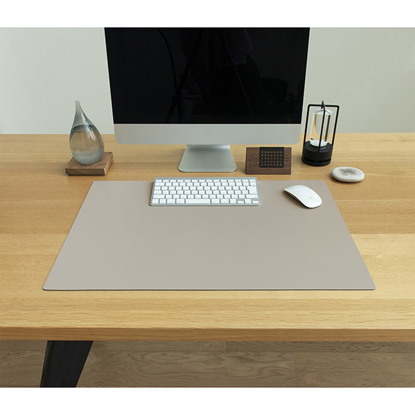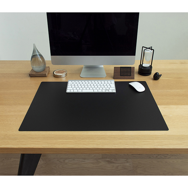 ステッチや刻印などの装飾をなくしたフラットな面と程よい厚みに設計されたシンプルなデスクマットです。