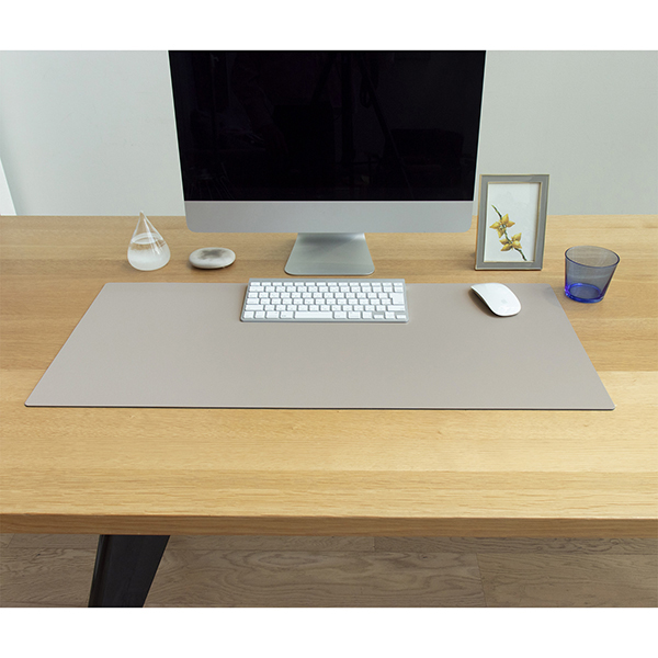 ステッチや刻印などの装飾をなくしたフラットな面と程よい厚みに設計されたシンプルなデスクマットです。
