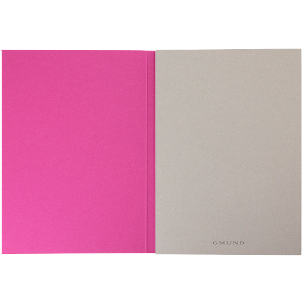 表紙、中紙はグレー色。表紙の内側がピンク色で、シンプルなデザインながら鮮やかなカラーがアクセントになっています。長辺が天のり製本されているので、ノート感覚で使えるノートパッドです。