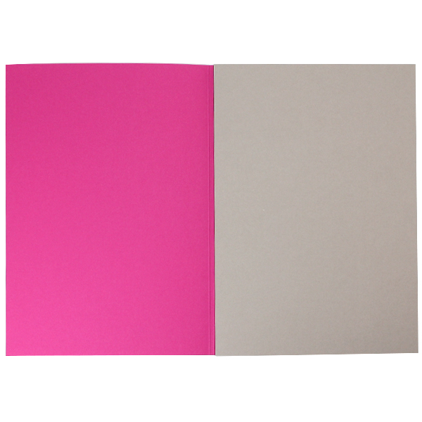 表紙の内側がピンクカラーで、シンプルなデザインながら鮮やかなカラーがアクセントになっています。長辺が天のり製本されているので、ノート感覚で使えるノートパッドです。中紙はグレーカラー。