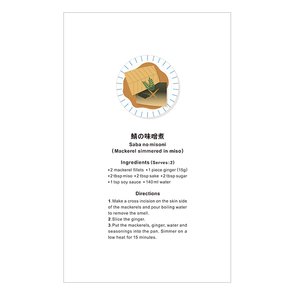 「おいしい日本の魚料理」のレシピや、アクセントで引かれた「波」の罫線など細部にも遊び心が込められた、楽しいノートです。中紙は、インクの裏抜けやにじみの少ない筆記に適した用紙です。