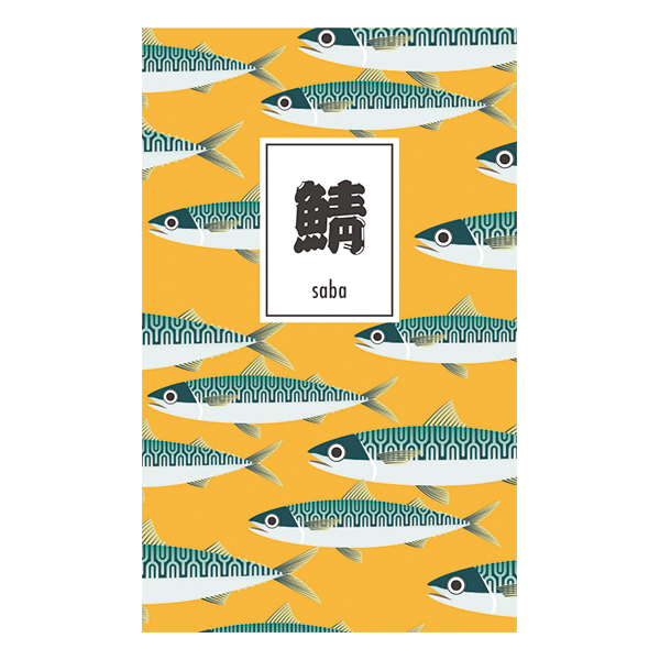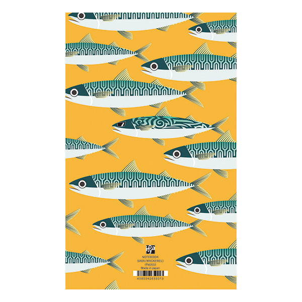 「おいしい魚」たちが海の中を悠々と泳ぐ、色鮮やかな図案に日本の文化を連想させる力強い筆文字があしらわれた、活気とユーモアにあふれたデザインノートです。