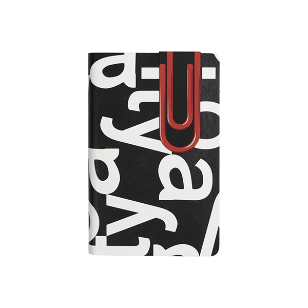 ロゴをレイアウトしています。マグネット製のブックマークは、レッドクリップをモチーフにしたオリジナルデザイン。