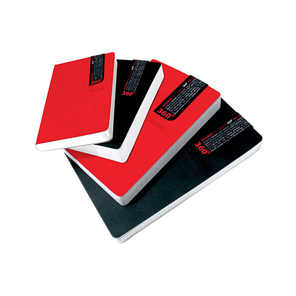 表紙には、上質なポリウレタン(PU)という合成皮革を使用しています。柔軟性が高く、360度開くこと、丸めて持つことを可能にしました。 通常のノートやレポート用紙の接着は、乾燥し次第に硬くなる為簡単に剥がれます。しかしジークエンス360は、硬くならない特別な接着剤を使用していますので、360度折り返しても剥がれおちることがありません。 いつも携帯し、アイデアブックとしてご利用いただいたり、旅行の際にお持ちいただくのに、最適なノートです。マグネットブックマーク付、同じサイズで横罫、方眼が選べます。