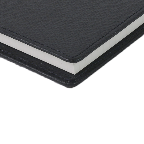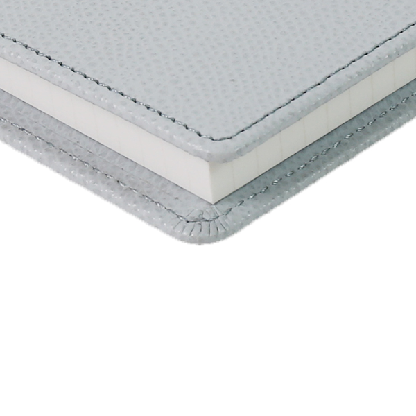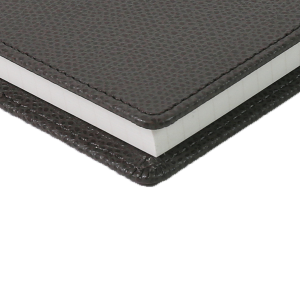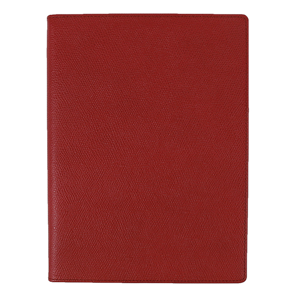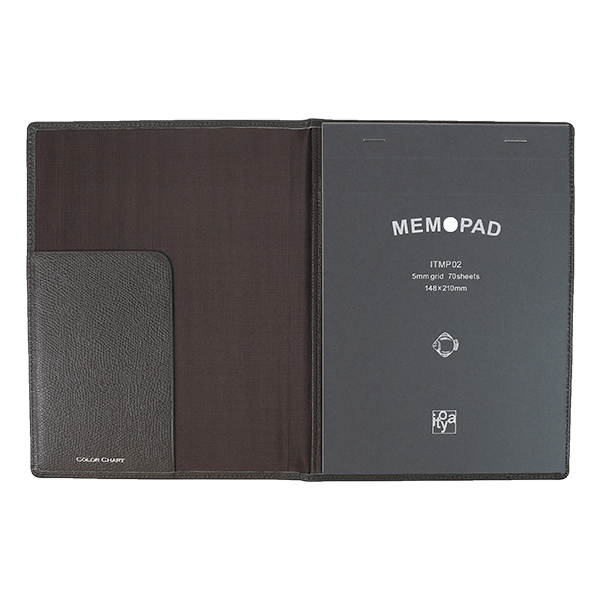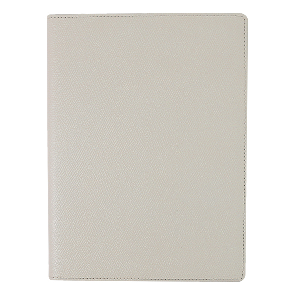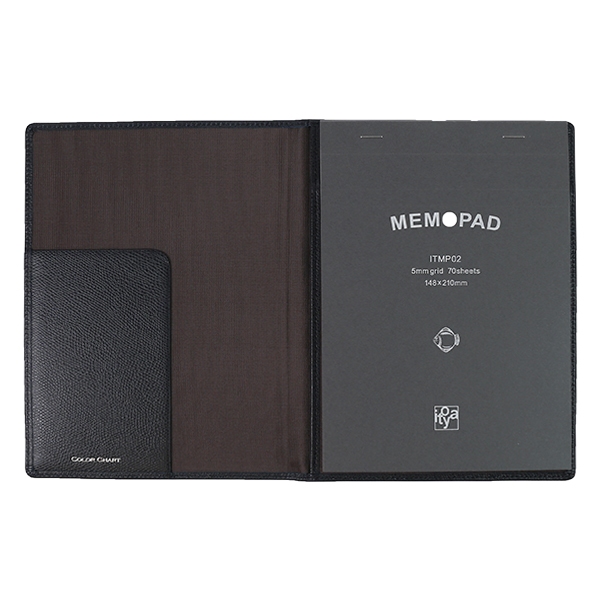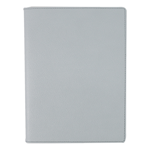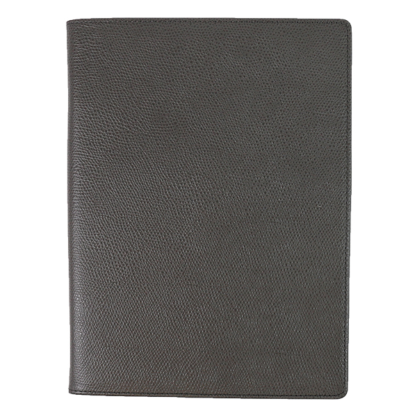 革カバー付きで、かしこまった会議にもふさわしいビジネスツールです。デスクワークにはもちろん、立ったままのメモにも対応する工夫がなされています。