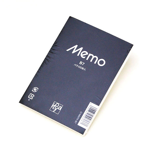 B7サイズのメモです。ボールペン、鉛筆などでも滑るように筆記が出来る上質紙を使用していますので、アイデアを逃すことなく書き留められます。バラ100枚をお求めやすくご提供します。
