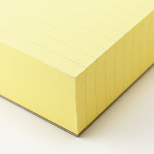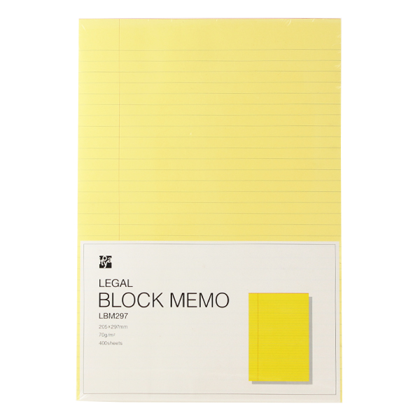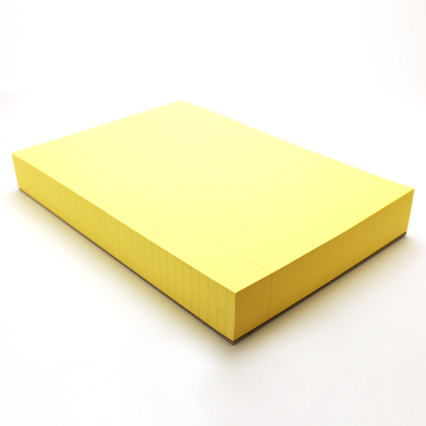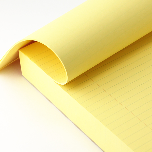 ひらめいた考えを瞬時に記録したり、連絡事項をサッとメモしたり、1日のTO DOを書き出したり・・・幅広く気軽に使える存在感のあるブロックメモです。元来リーガルパッドと同じ黄色の紙を赤い天糊で固定した大容量の400枚タイプは、メモを補充する心配もなく気軽に使うことができます。縦に引かれたマージン線は日付や見出しを記入する為の有用なスペースを形成し、また黄色い紙はコピー用紙などの書類にまぎれても見つけ出しやすい特性を備えています。