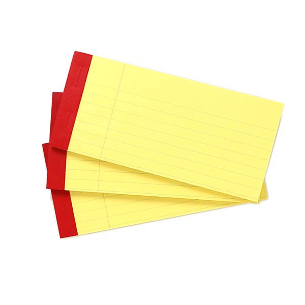 情報を一時的に記す、黄×赤のメモパッド「リーガルパッド」のチェックブック(小切手帳)からインスパイアされた横長タイプ。