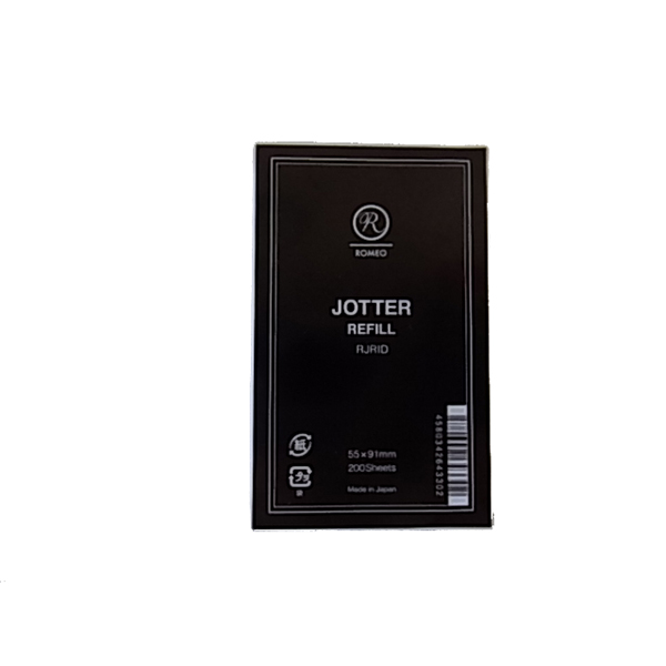 ロメオ「クロコ ID&ジョッターH」と「クロコ ID&ジョッターV」に対応したリフィールです。筆記特製に優れた用紙を採用しているので、万年筆・ボールペン・シャープペンいずれも滑らかな書き味でお使いいただけます。一枚一枚にロゴを印刷し、特別なメモに仕上げました。
