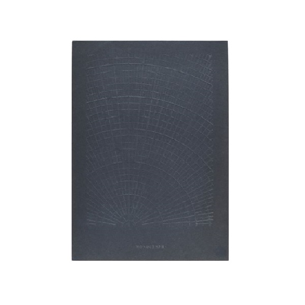 「極線」と名付けられた本品は、落ち着いたダークブルーの表紙に放射状グリッドがエンボス加工されており、スタイリッシュな一品です。