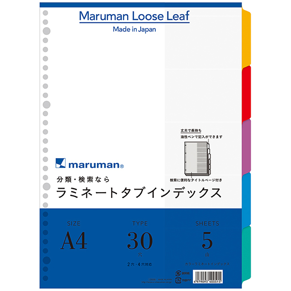 TOP ノート・メモ リーフ A4 ラミタブ見出し 5山