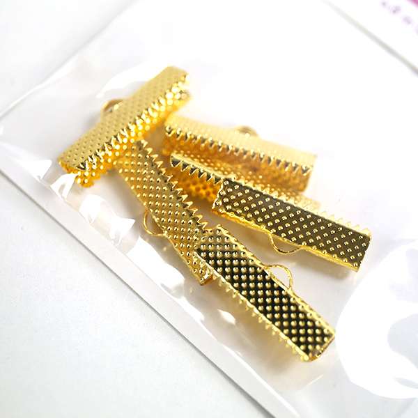 リボンやロープなどの端が解れない様に処理するワニ口の紐止め金具です。