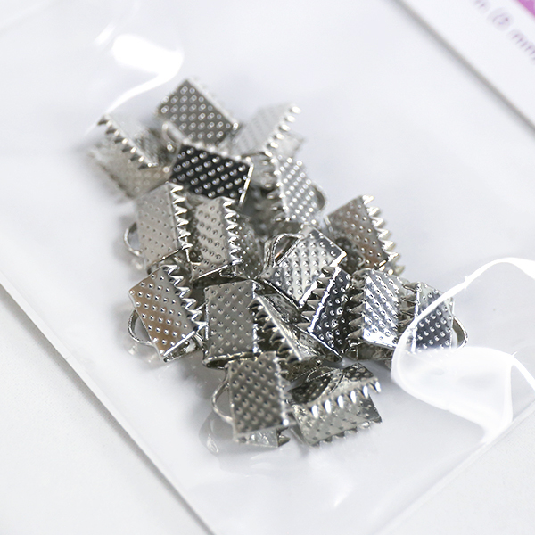 リボンやロープなどの端が解れない様に処理するワニ口の紐止め金具です。