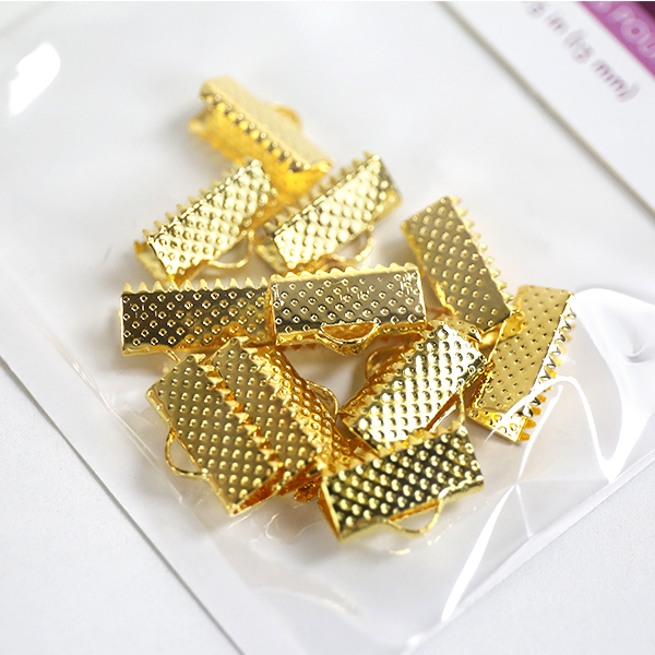 リボンやロープなどの端が解れない様に処理するワニ口の紐止め金具です。