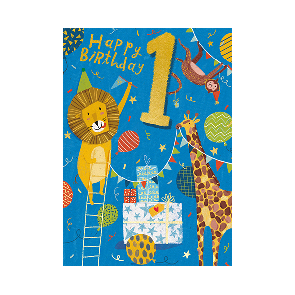 リングデザインバースデイカード GHB388 ボーイ1歳(ライオンときりん)