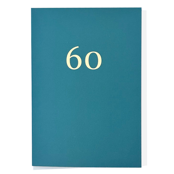 発色の良いカラーボードに年齢の数字のみホットフォイル加工で仕立てた、ハンサムなエイジ・バースデイカードです。