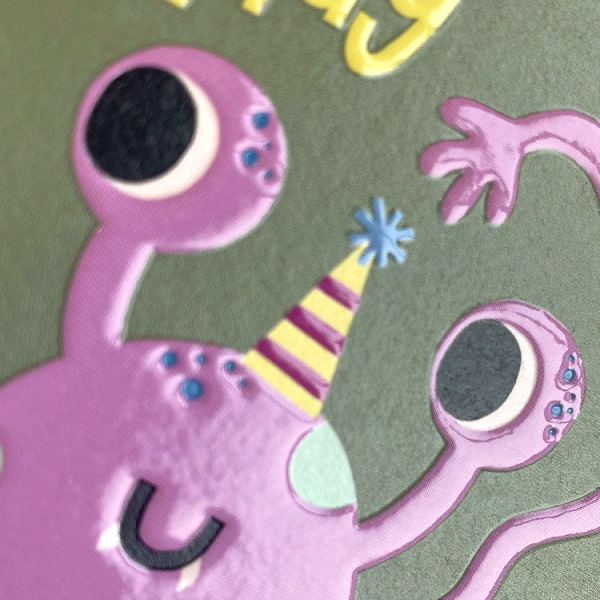 質のいい紙に鮮やかな印刷、更にエンボスとつや加工を施して、こっくりとしたとエナメルの様な効果を楽しめます。