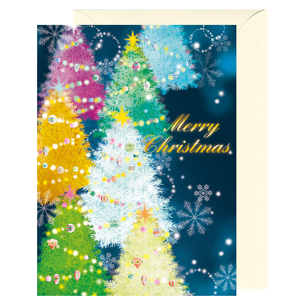 イルミネーションのツリーをモチーフにした洋風クリスマスカードです。