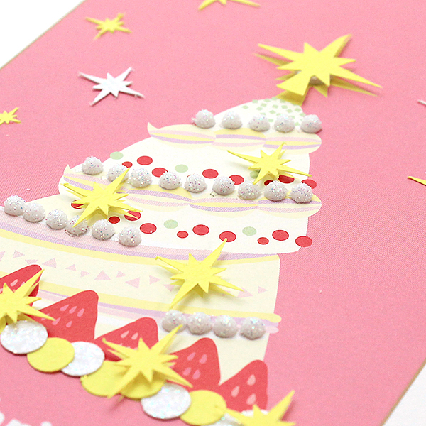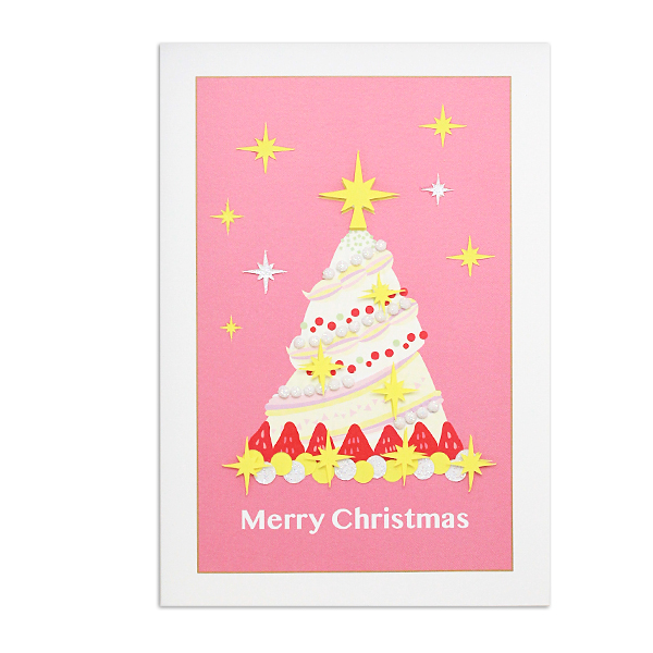 クリスマスを彩るデザインに、パピエリウムならではのデコレーションを施した、手作りのカードです。