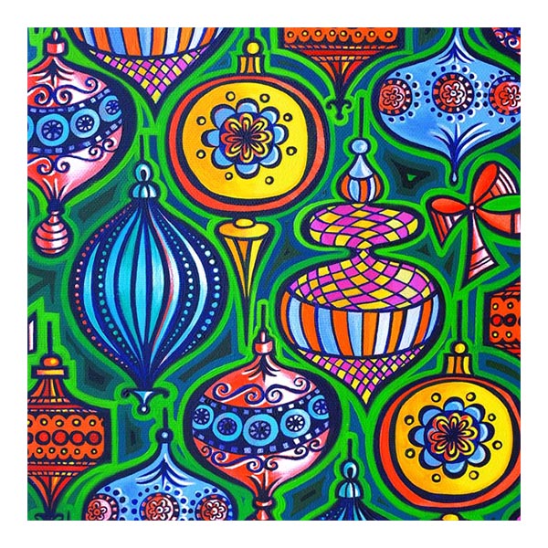 彼女の作品はインドからインスピレーションを得ており、高彩度な色使いと複雑に織り交ざる自然の形と模様が特徴です。