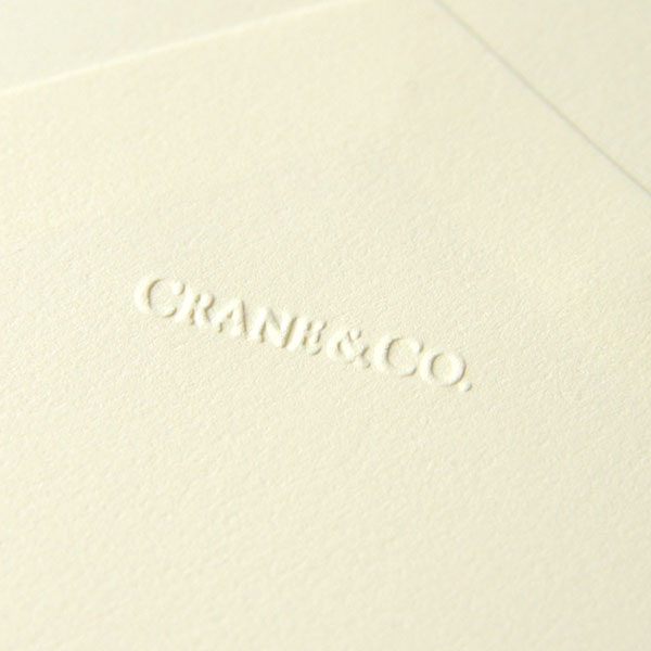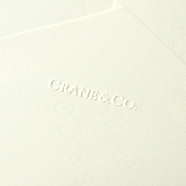 1801年アメリカ・マサチューセッツ州で創業したクレイン社は、ソーシャルステーショナリーの製造を手掛け、宝石店・一流店で販売を開始しました。以来アメリカドル紙幣や、株券、証券、パスポート等にも使用されています。コットン100%、きめ細かく長い繊維の特長を生かした適度な厚みとしなやかさを兼ね備えたクレインペーパーは、エンボス、エングレービング(銅版印刷)、サーモグラフィー(浮出し印刷)を美しく仕上げることができます。また、クレイン社独自のKID FINISHによる表面仕上げにより、手書きの深い味わいを感じさせます。木材パルプを一切使用していない環境に優しいステーショナリーです。
