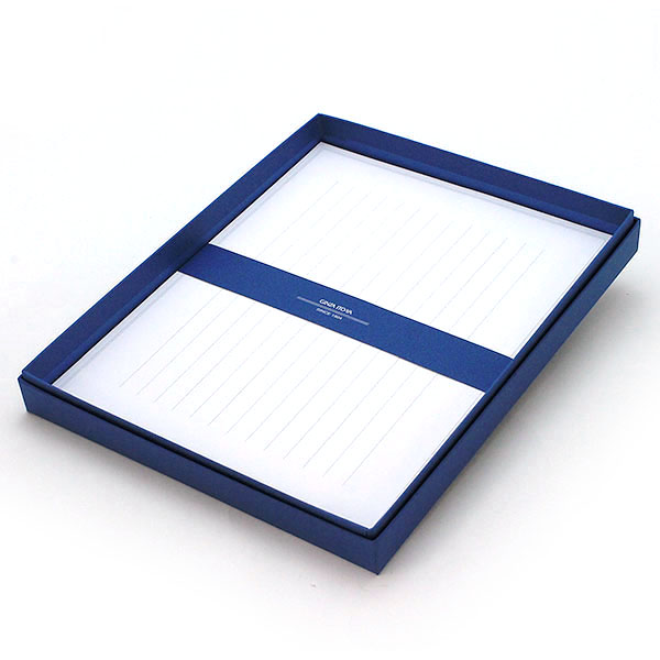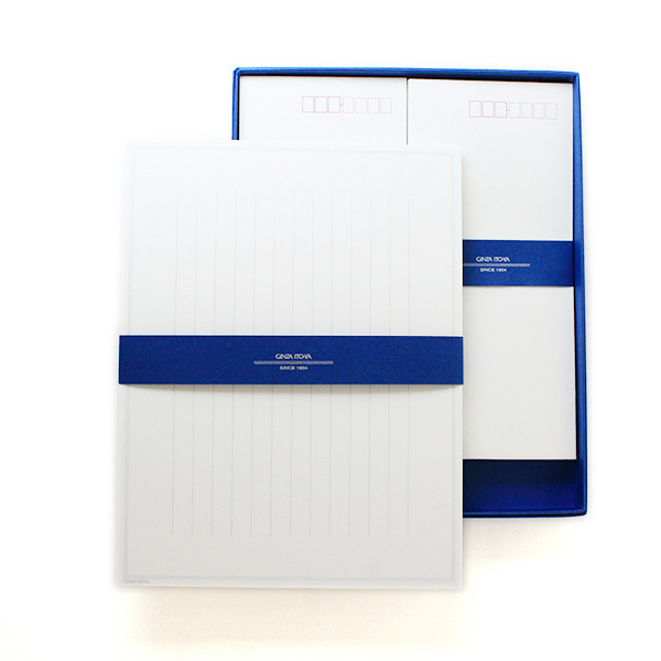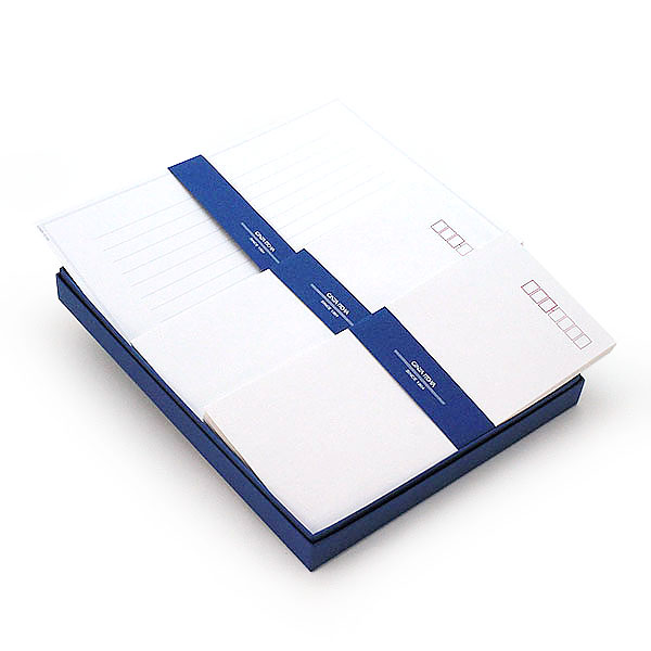 伊東屋オリジナル一枚完結箋シリーズから書簡箋を封筒とセットにして青いギフト箱に入れました。便箋・封筒各20枚入り 便箋176x4x230 封筒90x10x203 mm