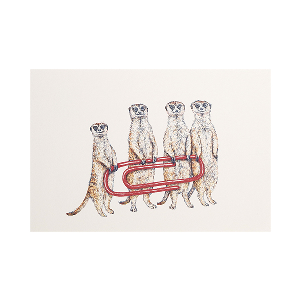 伊東屋のアイコンであるレッドクリップを抱えたミーアキャットのイラストは、秦直也によるコラボ描きおろしイラストです。