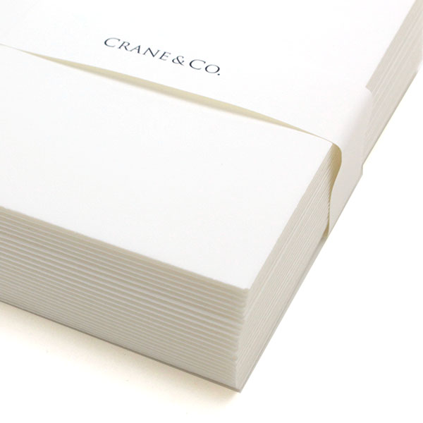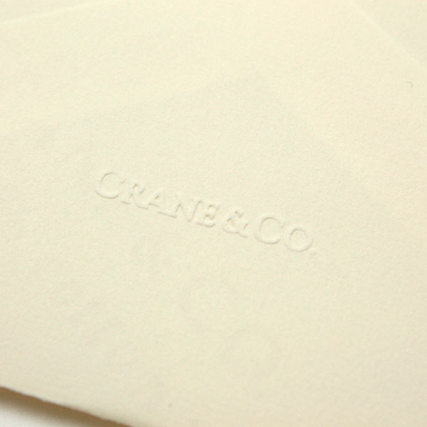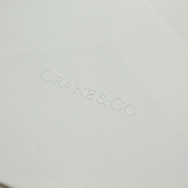 1801年アメリカ・マサチューセッツ州で創業したクレイン社は、ソーシャルステーショナリーの製造を手掛け、宝石店・一流店で販売を開始しました。以来アメリカドル紙幣や、株券、証券、パスポート等にも使用されています。コットン100%、きめ細かく長い繊維の特長を生かした適度な厚みとしなやかさを兼ね備えたクレインペーパーは、エンボス、エングレービング(銅版印刷)、サーモグラフィー(浮出し印刷)を美しく仕上げることができます。また、クレイン社独自のKID FINISHによる表面仕上げにより、手書きの深い味わいを感じさせます。木材パルプを一切使用していない環境に優しいステーショナリーです。