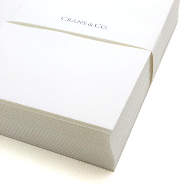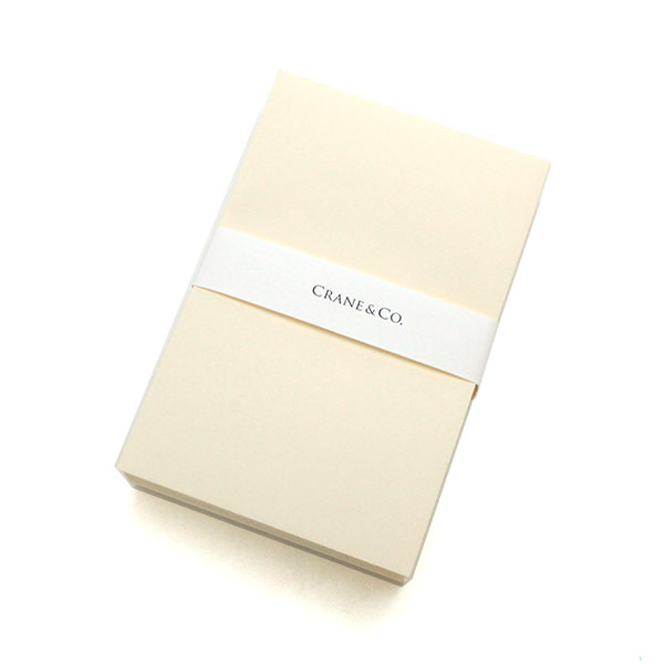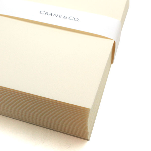 1801年アメリカ・マサチューセッツ州で創業したクレイン社は、ソーシャルステーショナリーの製造を手掛け、宝石店・一流店で販売を開始しました。以来アメリカドル紙幣や、株券、証券、パスポート等にも使用されています。コットン100%、きめ細かく長い繊維の特長を生かした適度な厚みとしなやかさを兼ね備えたクレインペーパーは、エンボス、エングレービング(銅版印刷)、サーモグラフィー(浮出し印刷)を美しく仕上げることができます。また、クレイン社独自のKID FINISHによる表面仕上げにより、手書きの深い味わいを感じさせます。木材パルプを一切使用していない環境に優しいステーショナリーです。