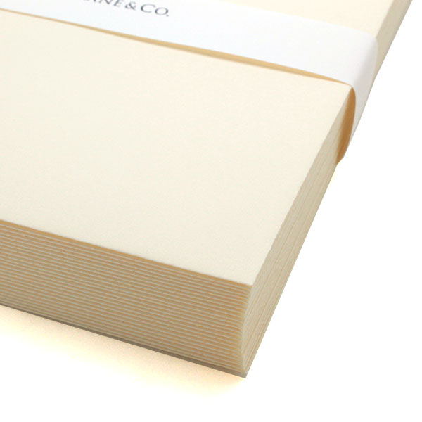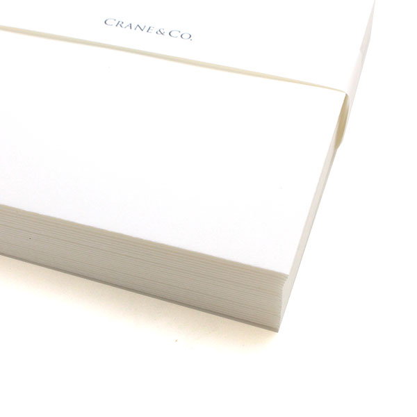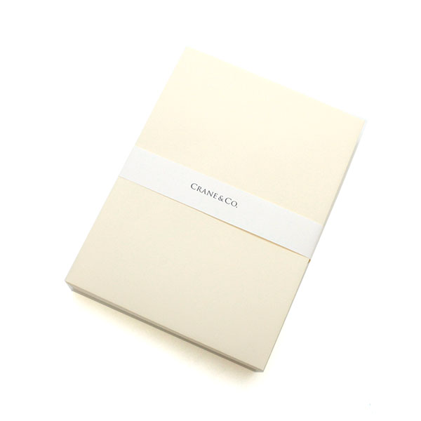1801年アメリカ・マサチューセッツ州で創業したクレイン社は、ソーシャルステーショナリーの製造を手掛け、宝石店・一流店で販売を開始しました。以来アメリカドル紙幣や、株券、証券、パスポート等にも使用されています。コットン100%、きめ細かく長い繊維の特長を生かした適度な厚みとしなやかさを兼ね備えたクレインペーパーは、エンボス、エングレービング(銅版印刷)、サーモグラフィー(浮出し印刷)を美しく仕上げることができます。また、クレイン社独自のKID FINISHによる表面仕上げにより、手書きの深い味わいを感じさせます。木材パルプを一切使用していない環境に優しいステーショナリーです。