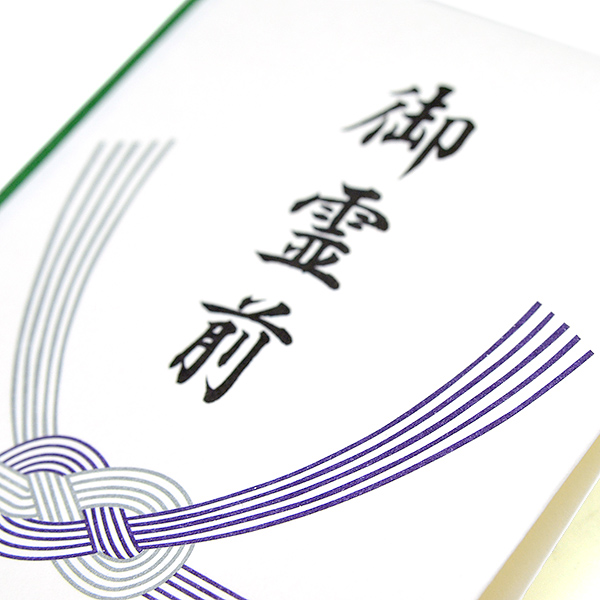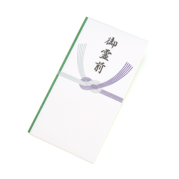 御霊前の文字入り水引付きの多当です。通夜から四十九日の法要までお使いいただけます。