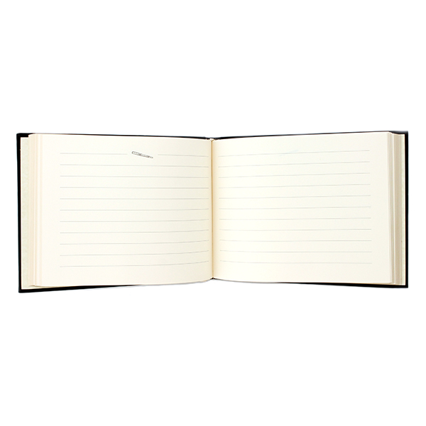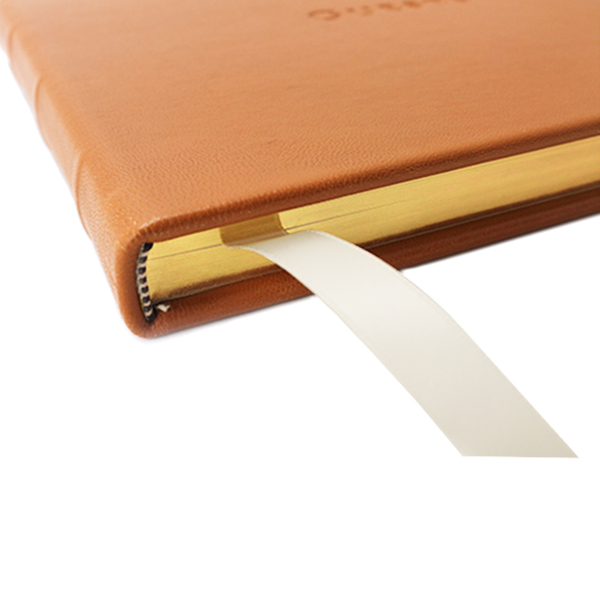 お客様をお迎えする始まりの場面にふさわしい、革貼りで重厚感のあるゲストブックです。