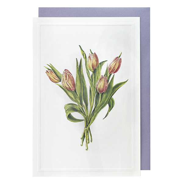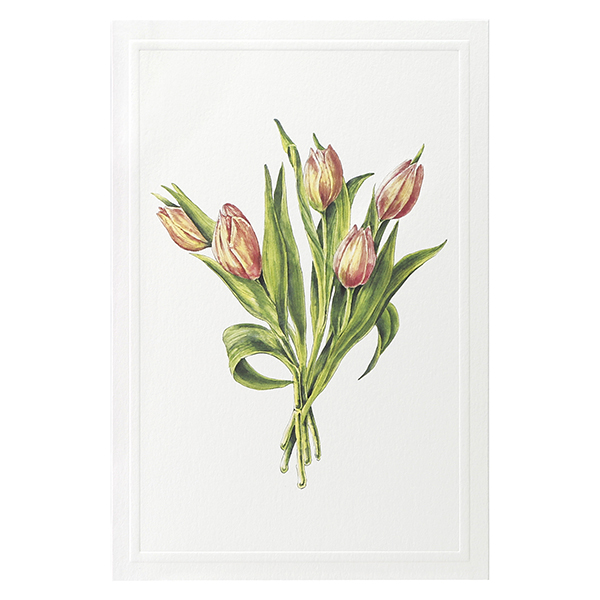 ピンクのチューリップを集めた花束とともに、綴られた思いを鮮やかに届けます。