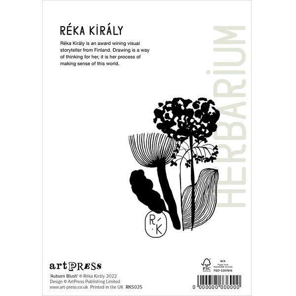 「色の組み合わせや模様から着想を得て、いつも手描きや墨絵の要素から作品を作り始める」という彼女の植物画をカードにしました。