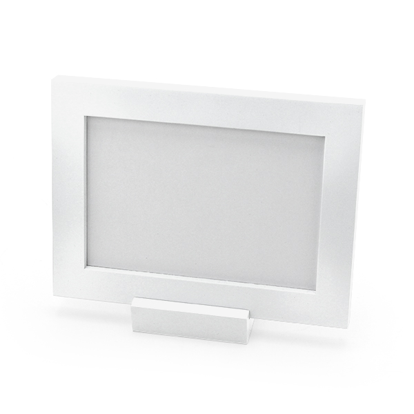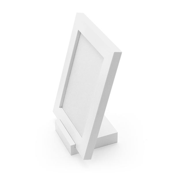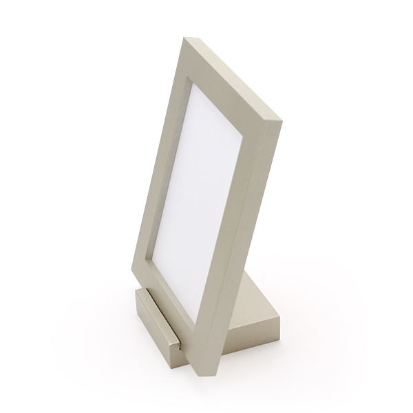 壁掛け用として設計していますが、別売の台座と組み合わせることで棚や机上にも置くことができます。