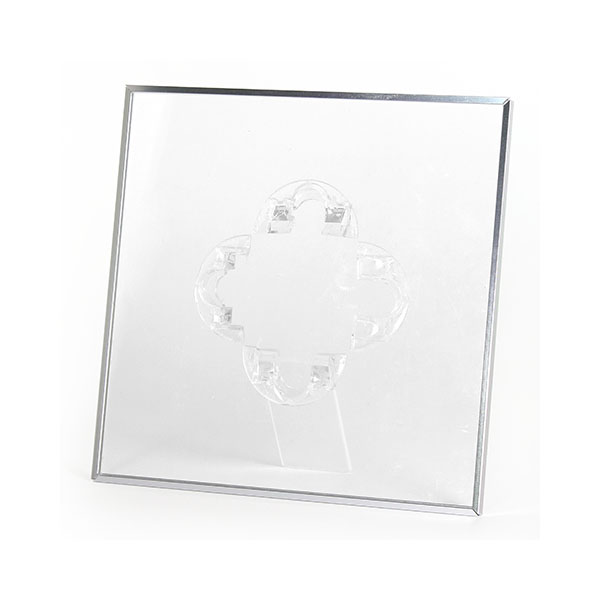 良く見かけるアクリルフレームは四隅をビスで止めるタイプですが、トラップフレームはビスを使用しないタイプのフレームです。