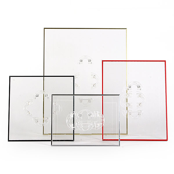 トラップフレームは3mm厚のアクリル板2枚の間に紙をはさんでフレーミングする伊東屋オリジナルのアクリルフレームです。
